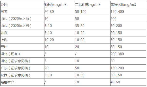 我國已出臺的部分地區(qū)燃氣鍋爐排放標準匯總